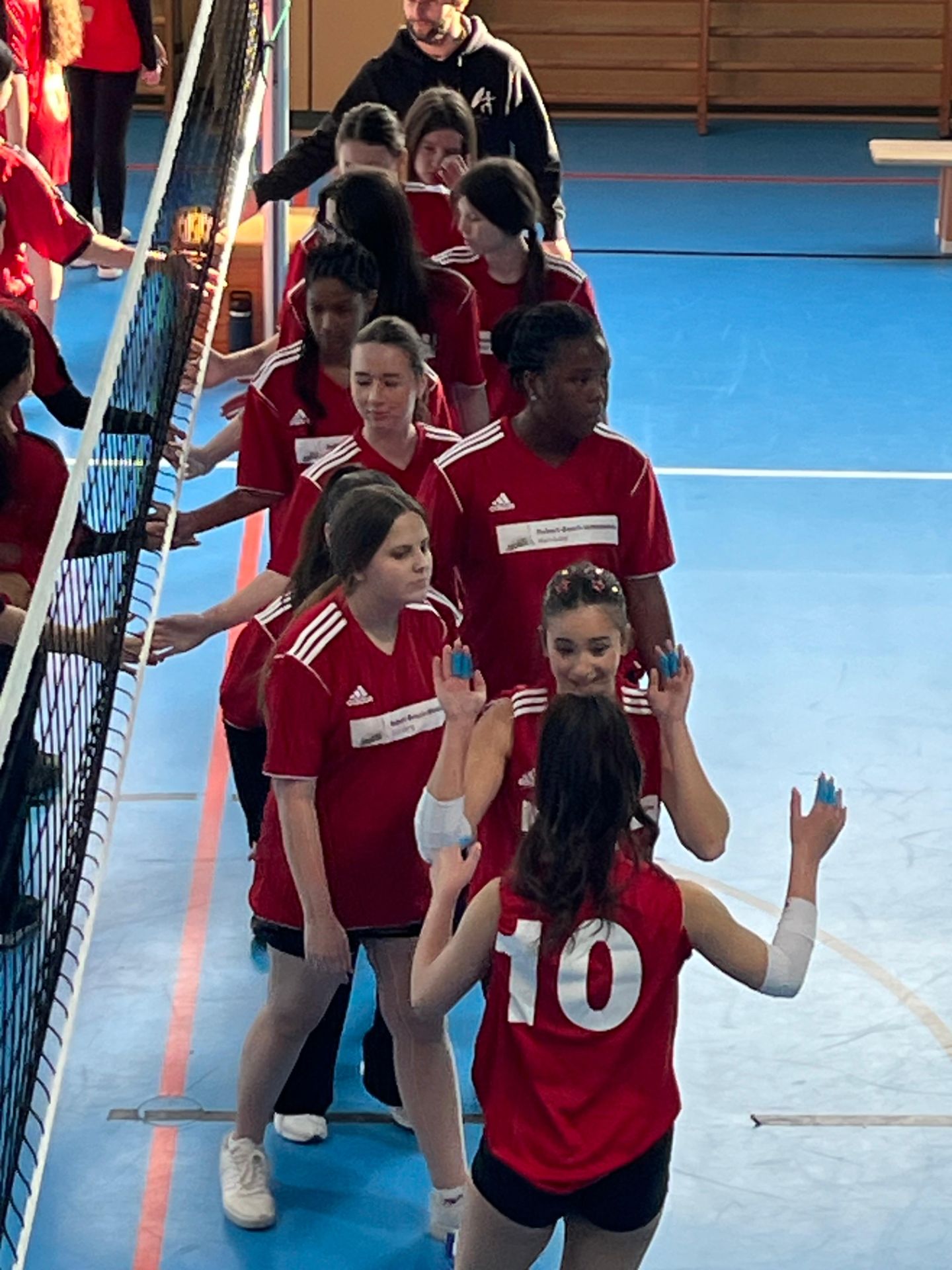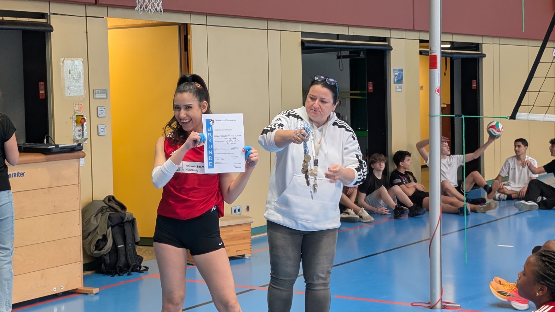 Doch mit unglaublichem Kampfgeist und starken Aufschlägen von Ajla drehten die Mädchen das Spiel und gewannen den Satz noch sensationell mit 27:25. Ein Moment, der zeigt: Aufgeben ist für die Robert-Bosch-Schülerinnen keine Option!