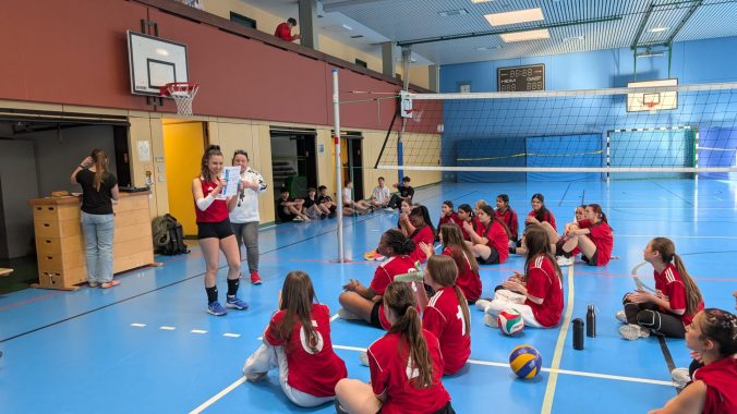 Nach dem offiziellen Teil gab es noch ein besonderes Highlight: Ein Freundschaftsspiel gegen das Team der Jungen. Was als lockerer Ausklang geplant war, entwickelte sich zu einem echten Krimi. Unsere Mädels lagen bereits mit 21:24 zurück – die Jungs brauchten nur noch einen einzigen Punkt zum Sieg.