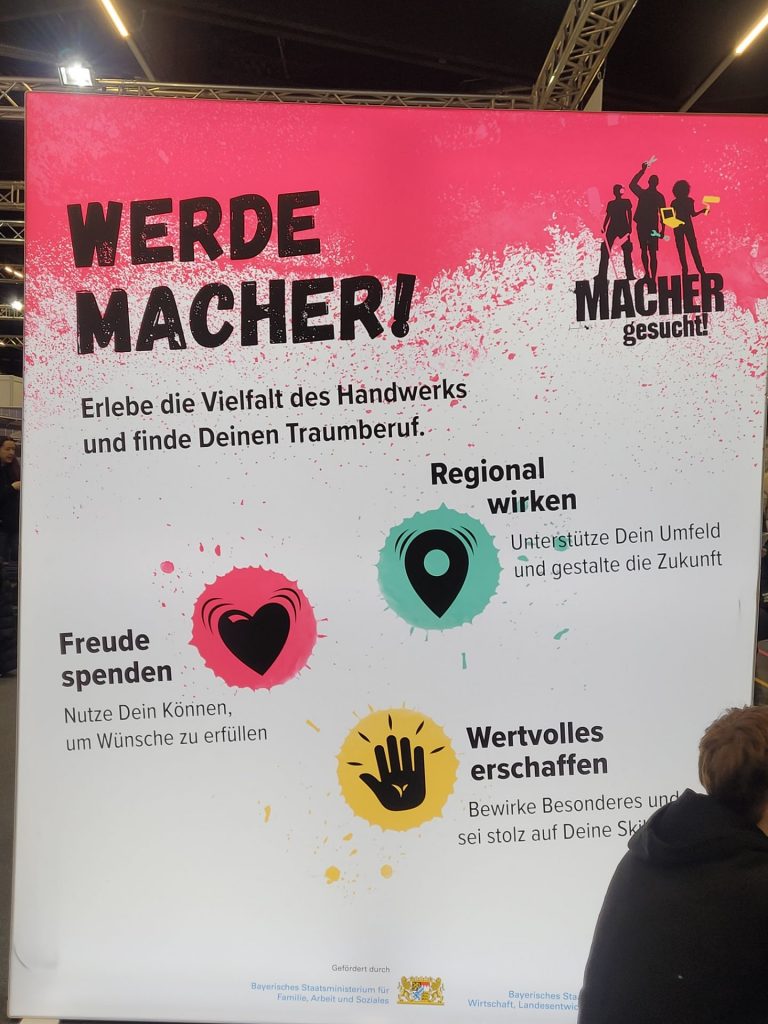 Am 09.12.2025 besuchten die Klassen 8a, 8b und 8c die Berufsbildungsmesse in Nürnberg. Auf dem weitläufigen Messegelände präsentierten sich zahlreiche Betriebe und Institutionen – darunter handwerkliche Unternehmen wie Gerüstbauer, Schreiner und Estrichverleger, aber auch die Bundeswehr, der Zoll, die Polizei, Aldi, die Diakonie und viele weitere Ausbildungsbetriebe.